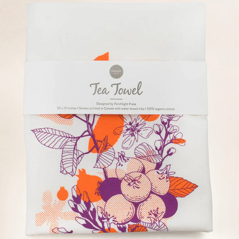 Size 29″ x 19″ Beautifully detailed brightly coloured illustration featuring edible treasures in our West Coast Forest Foraging Series. The towels are 100% organic cotton, and are designed and printed with water based inks locally in Vancouver, BC Canada.