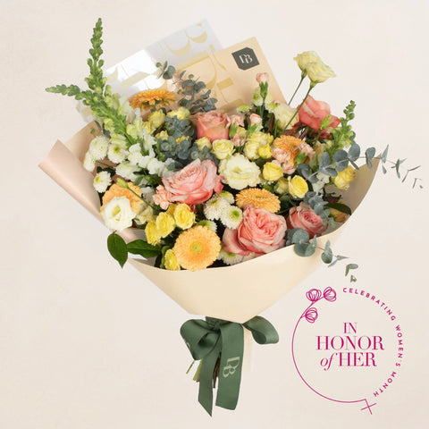 Découvrez The Devon, un bouquet qui respire le charme et la beauté de la campagne anglaise vallonnée. Cette composition pittoresque, un savant mélange de couleurs, de textures et de parfums, vous transportera dans les paysages idylliques du Devonshire.