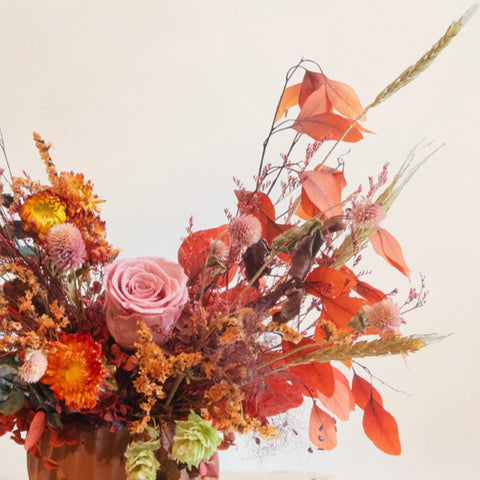 Fleurs focales : Roses, Dahlias, Rudbeckia, Alstroemeria