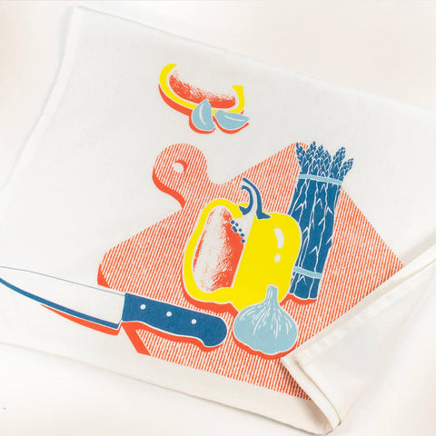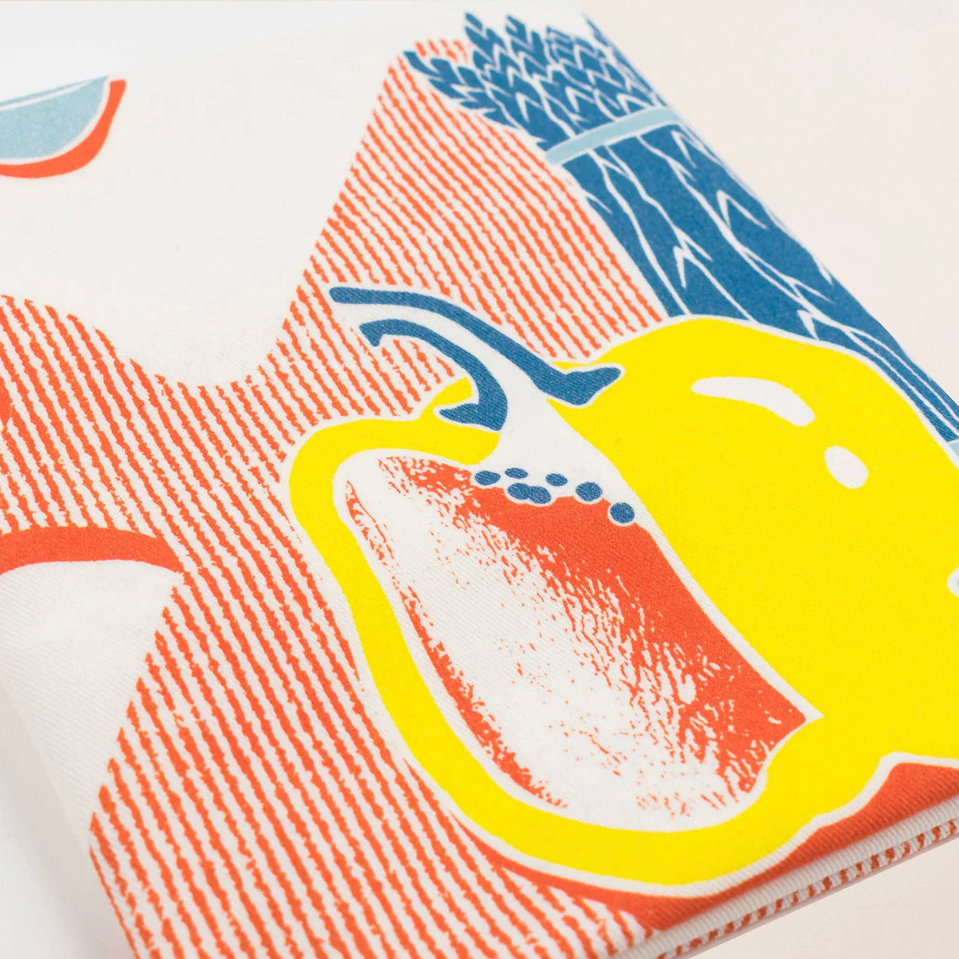 Les serviettes sont 100 % coton biologique et sont conçues et imprimées avec des encres à base d'eau localement à Vancouver, en Colombie-Britannique, au Canada.