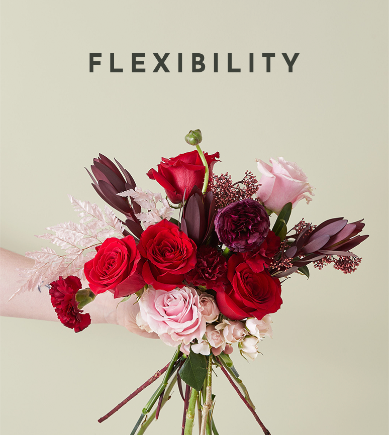 Vous pouvez opter pour des livraisons hebdomadaires, bimensuelles ou mensuelles, selon vos besoins. Choisissez la date de livraison de votre première commande ; les bouquets suivants seront livrés le mercredi. Nous proposons également deux options de paiement : paiement à l'utilisation ou paiement d'avance pour l'abonnement complet. Combinez ces options pour créer l'abonnement qui vous convient !
