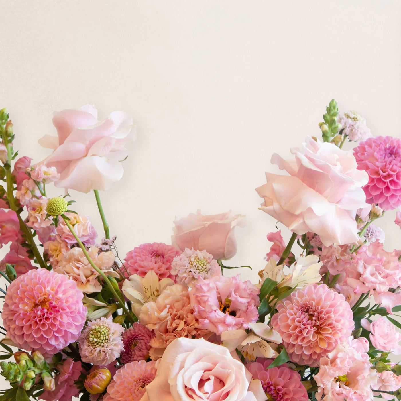 Fleurs : Roses, Dahlia, Œillets, Lisianthus, Alstroemeria, Muflier