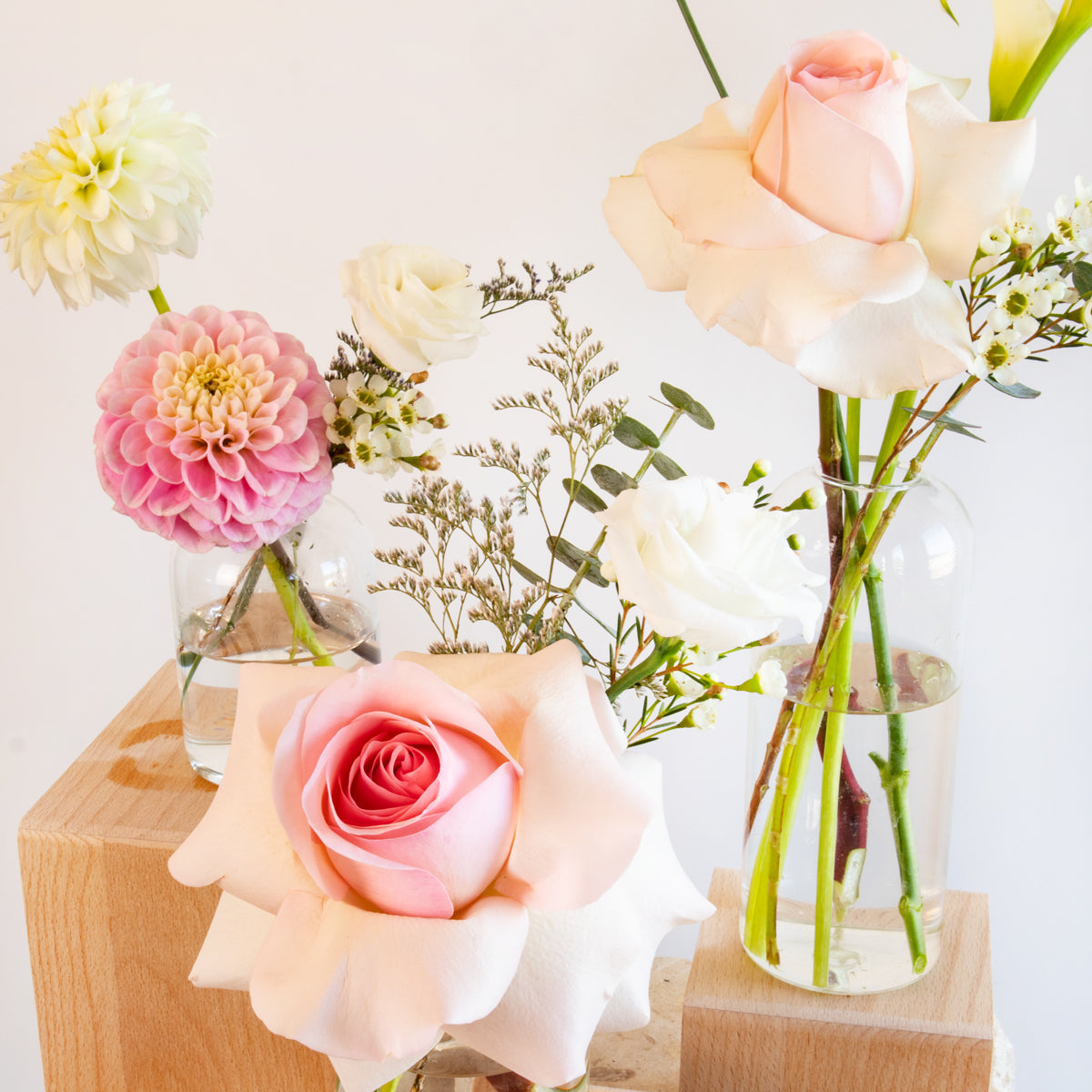 Our Bud Vase set includes 3 bud vases in varying styles and sizes. Each vase will hold a unique set of flowers.